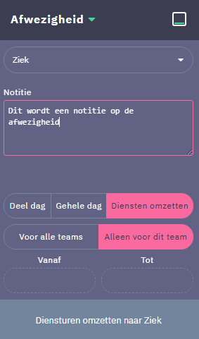 Voeg indien gewenst een notitie op de afwezigheid toe