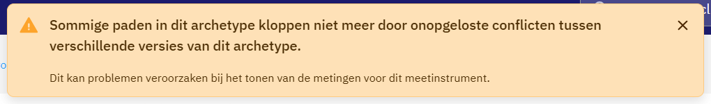 Dit lost ook de volgende melding op: "Sommige paden in dit archetype kloppen niet meer door onopgeloste conflicten tussen verschillende versies van dit archetype. Dit kan problemen veroorzaken bij het tonen van de metingen voor dit meetinstrument."