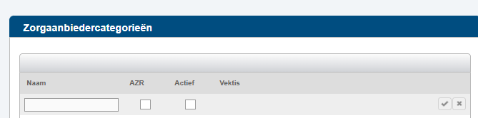 Actief: Alleen actieve categorieën zijn te selecteren bij het toevoegen van een externe zorgleverancier bij een cliënt.