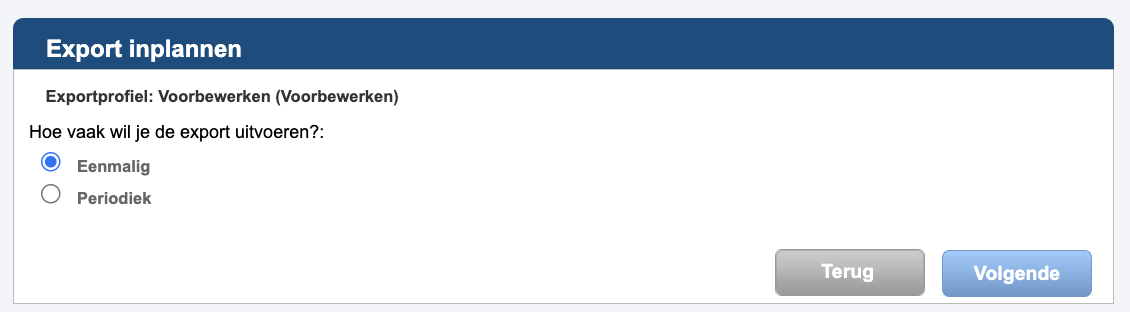 Kies je voor periodiek, dan kun je vervolgens de verdere planning van de export vastleggen.
